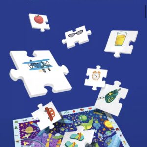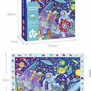 The game contains a set of scattered pictures (42) pictures of cardboard, which is a puzzle that introduces your child to the world of space and gives him space to form an integrated board by assembling the elements in the appropriate place.