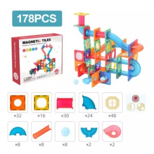 It contains (178) plastic pieces in colors that attract the eye with a number of balls, which are placed on these pieces after they are installed and connected to each other.